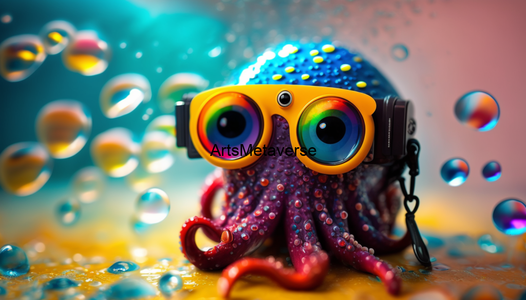 Speaking of the octopus, it’s hard not to fall in love with the baby colorful octopus in this photo. With its large and cute eyes and adorable yellow goggles, it’s almost like a character from a cartoon. The octopus is the focal point of the image, and it’s easy to see why. Its vibrant colors and intricate patterns make it a true work of art, and the photorealistic style of the photo only enhances its beauty.